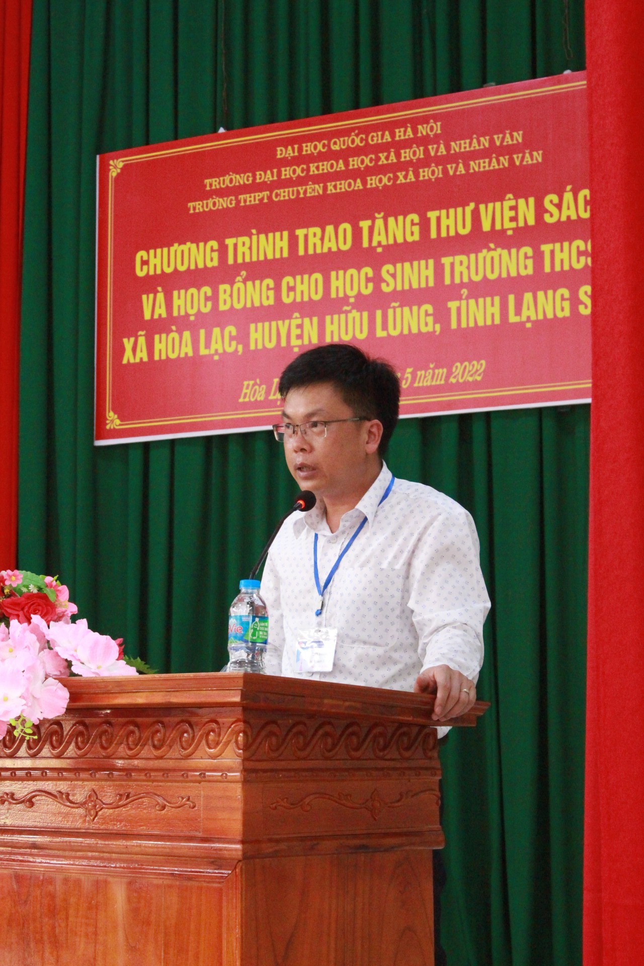 Được biết các em học sinh nơi đây dù rất ham học nhưng còn gặp nhiều khó khăn trong việc tiếp cận với học liệu, thầy trò và phụ huynh học sinh Trường THPT Chuyên KHXH&NV đã trao tặng Trường THCS Xã Hòa Lạc, huyện Hữu Lũng, tỉnh Lạng Sơn hơn 1000 đầu sách truyện và 5 giá sách cho thư viện Trường, 70 bộ sách giáo khoa, 5 xe đạp, 20 suất học bổng, 2900 quyển vở và 50 thùng nước mía.