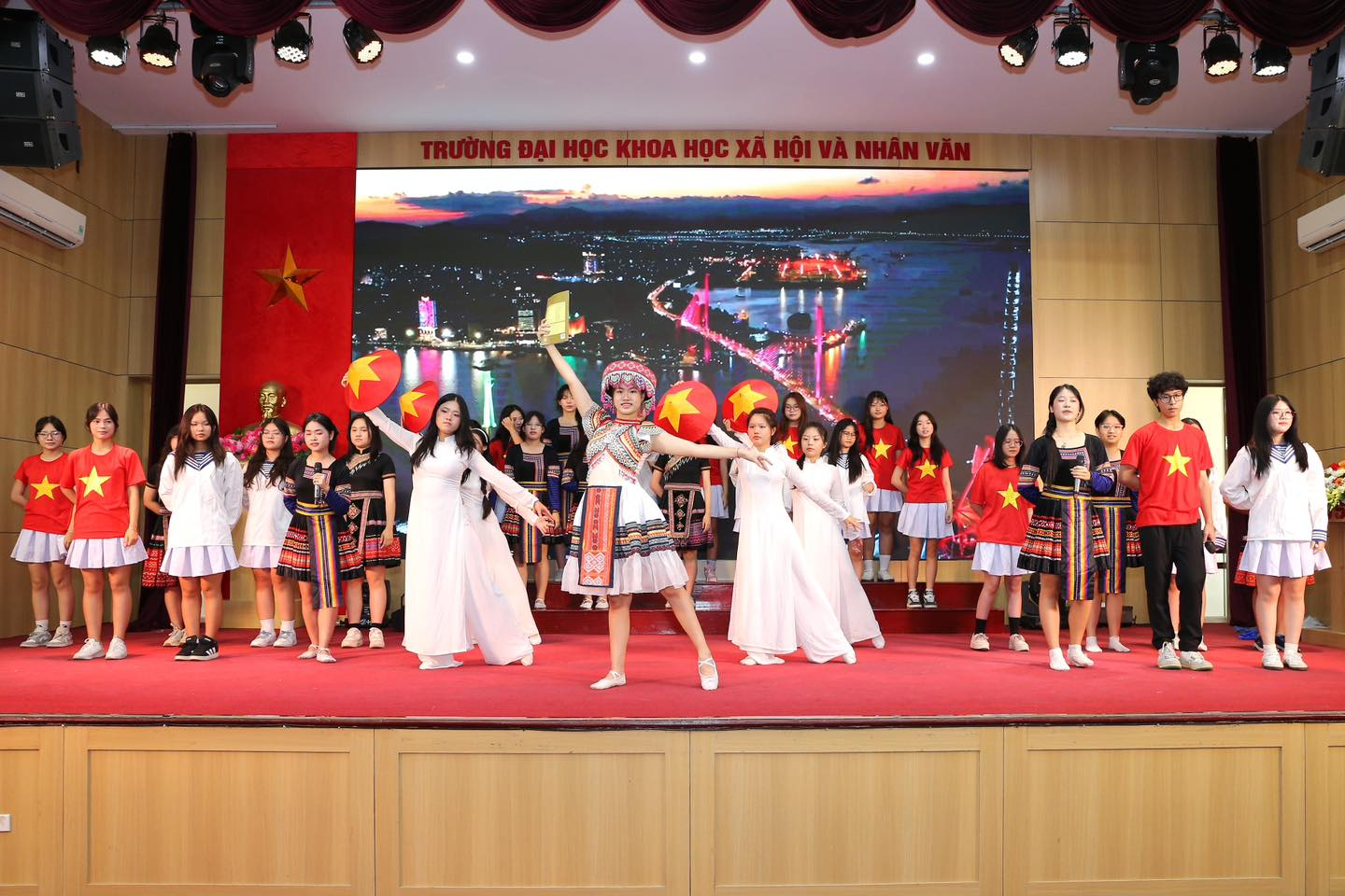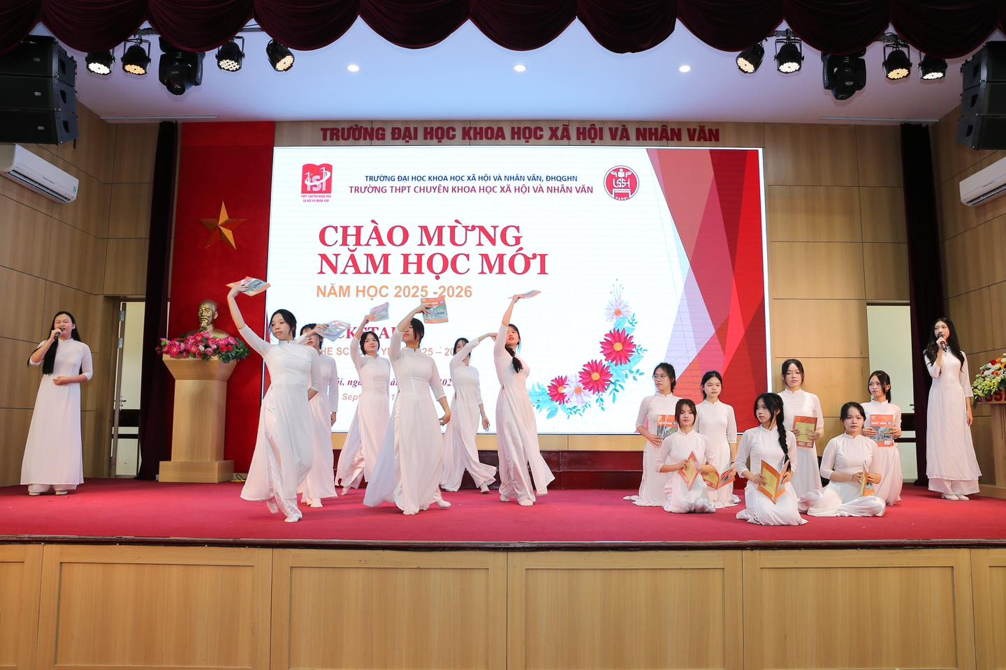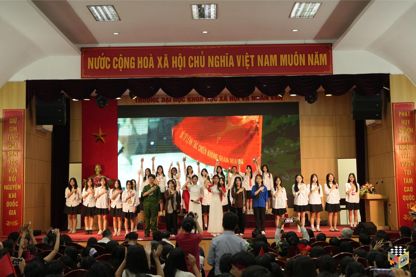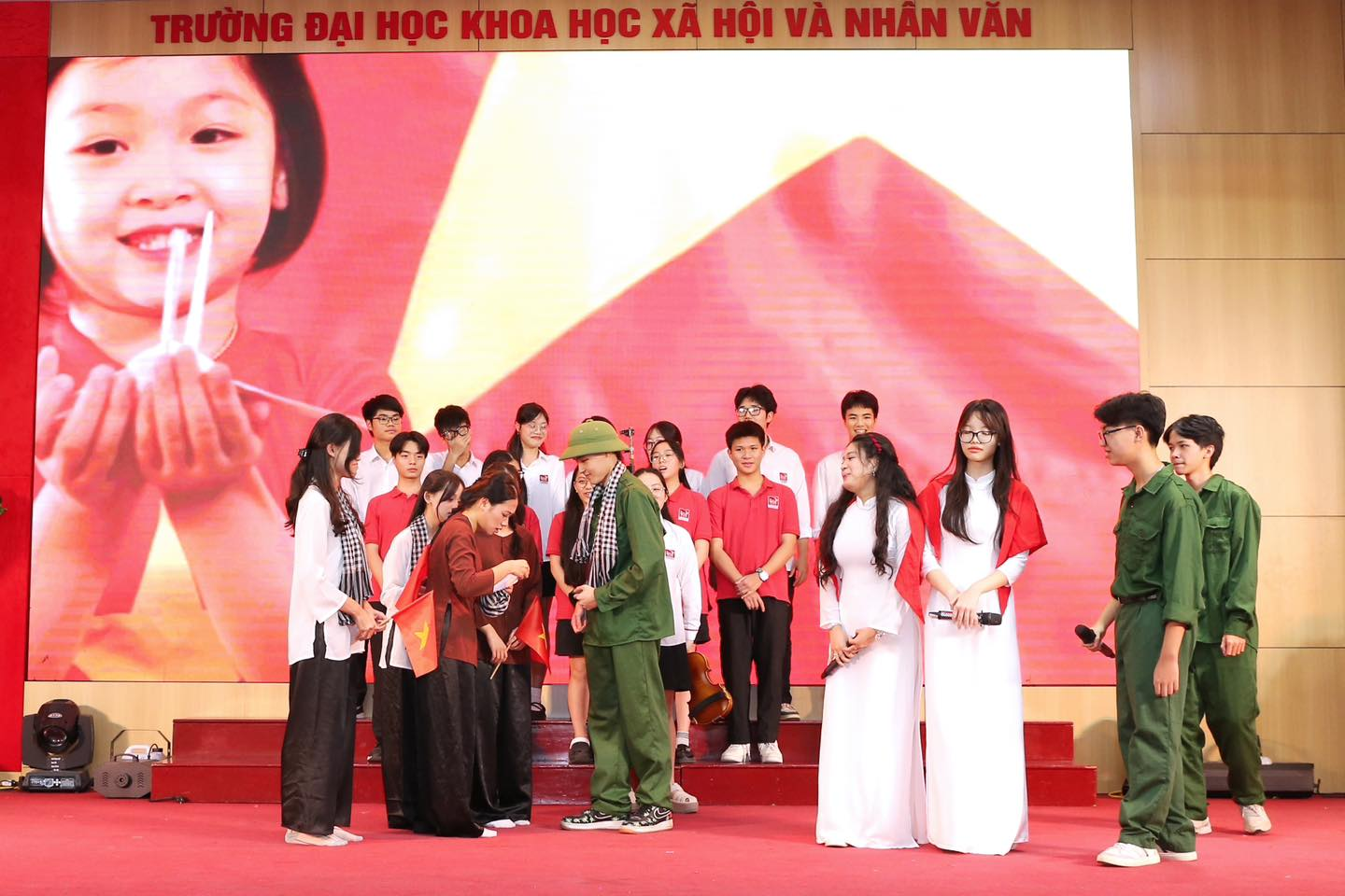 Hội thi vinh dự có sự hiện diện của Ban Giám hiệu Nhà trường, các thầy cô giáo, cán bộ nhân viên, đại diện Ban phụ huynh và toàn thể các em học sinh trường THPT Chuyên KHXH&NV. Mở đầu chương trình, PGS.TS Nguyễn Quang Liệu - Hiệu trường Nhà trường đã gửi lời chào nồng nhiệt tới các em học sinh, nhấn mạnh định hướng giáo dục của Nhà trường và niềm tin vững chắc vào thế hệ tương lai, đồng thời đọc diễn văn chào mừng năm học mới.